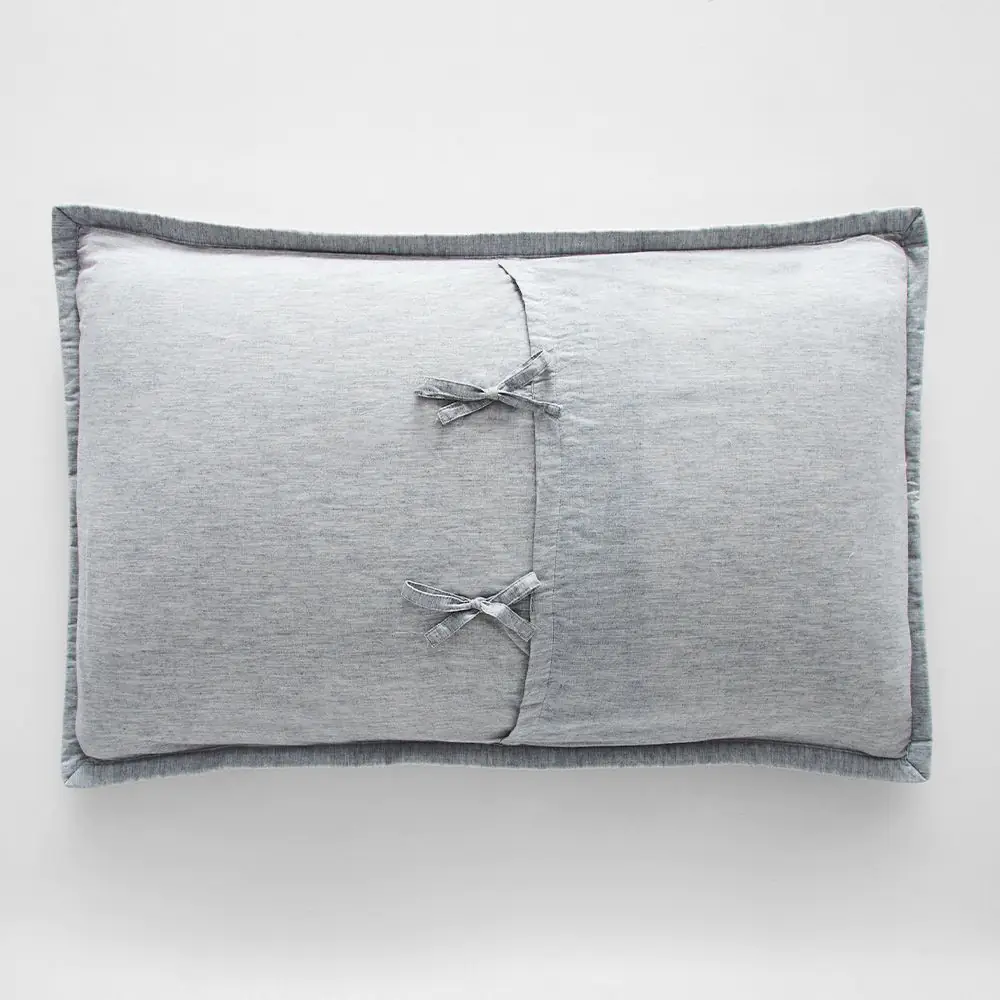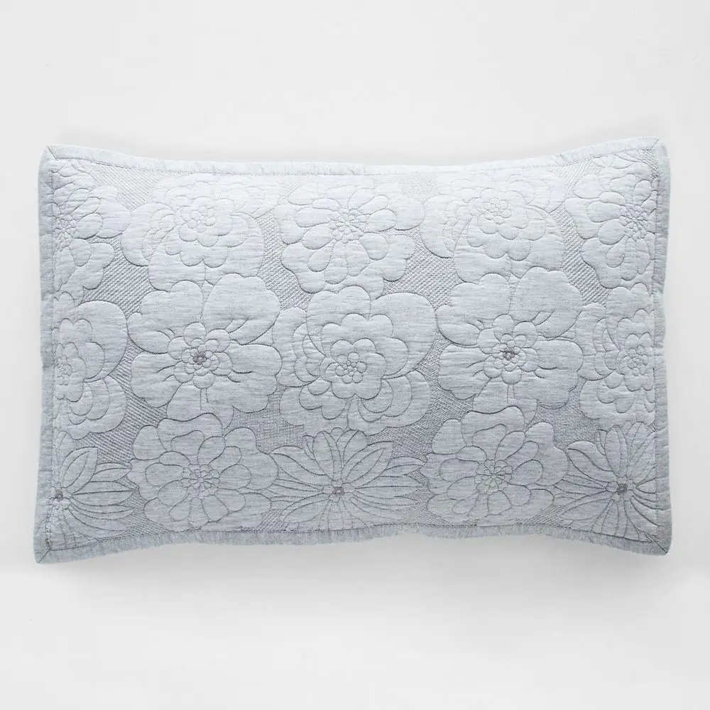 Ava is a beautiful, textural sham quilted in the traditional French boutis manner. The soft grey cotton is enhanced by the stitching and makes a calming backdrop for your bedroom while combining well with almost any colour. The reverse side is a plain grey cotton, with two tie closures.