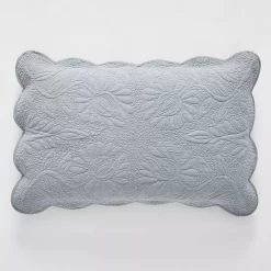 The Cullen is a beautifully stitched 100% cotton sham, quilted in the tradition French boutis manner with cotton filling between the two fabric layers. It is carefully stitched in a lovely floral pattern and finished with a pretty scallloped edge. The beautiful blue of the coverlet will give your bedroom a facelift and team with many other colours.