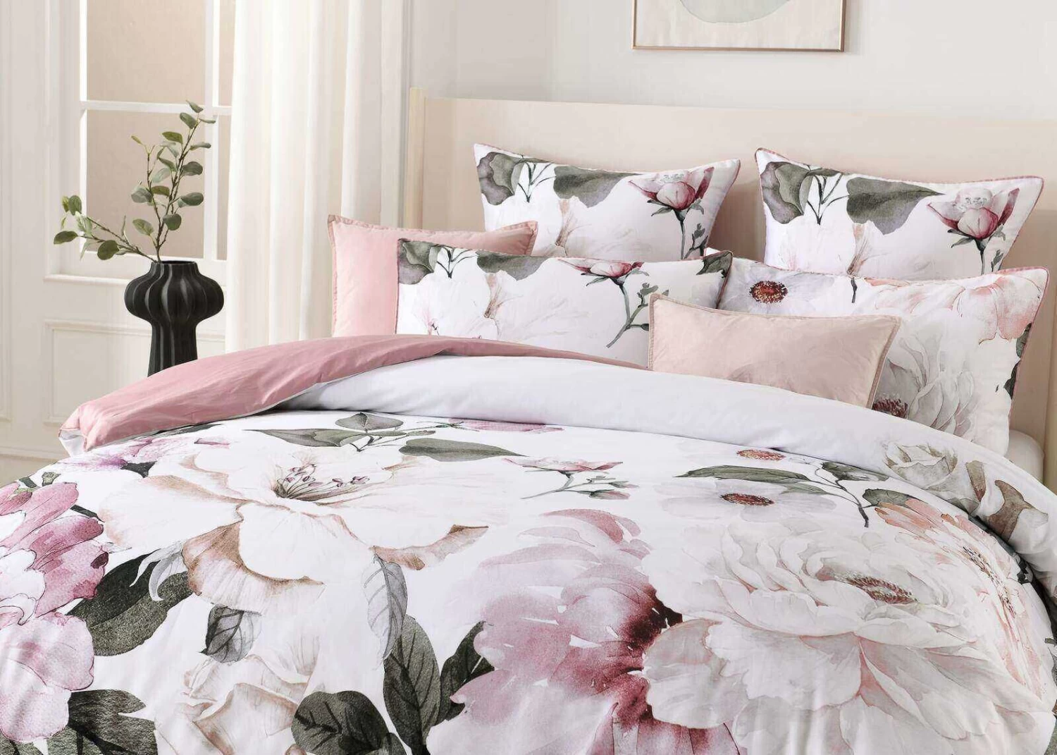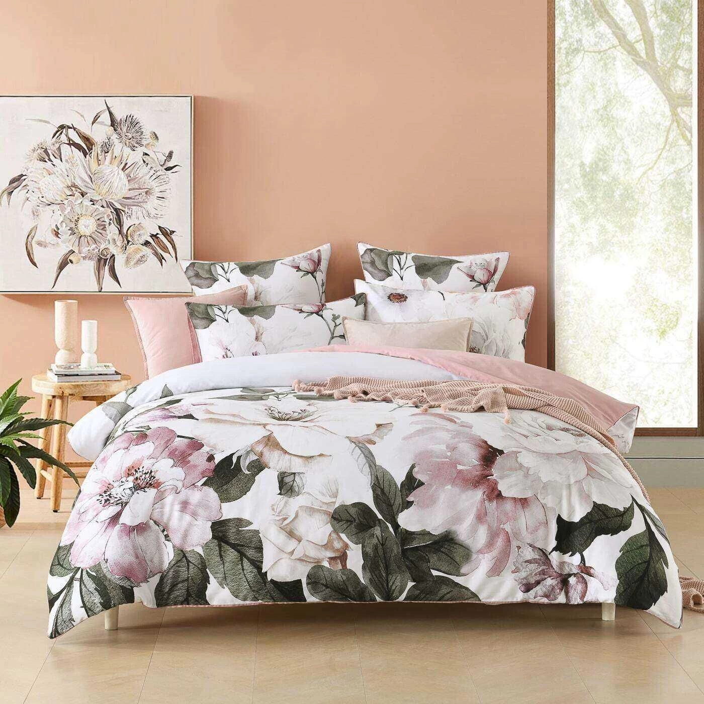 This cover features a floral print with pastal shades to beautifully complement your bedroom decor. This wonderfully soft cotton quilt cover can be beautifully complemented with a selection of cushions and throws.