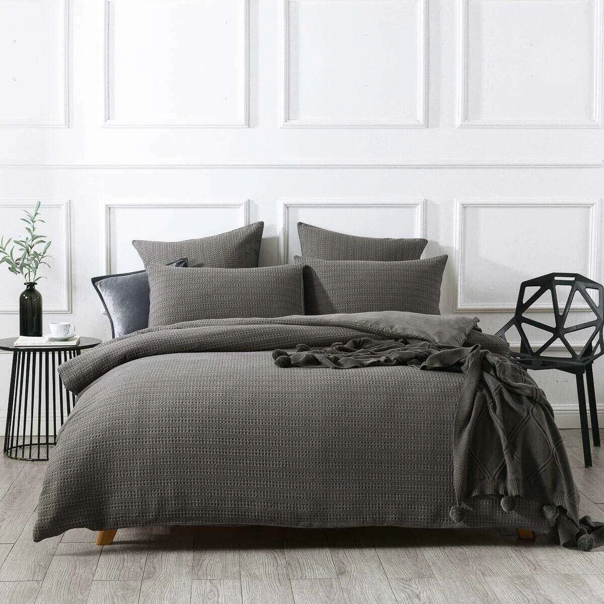 The Jax Cotton Charcoal Waffle quilt cover set delivers timeless luxury and comfort. The chunky weave has an intriguing, springy texture unique to waffle weave sets. Functional as well as fashionable, the fabric is heavier than regular quilt covers and provides warmth. Made from 100% cotton, it has a wonderful softness and breathes easily.