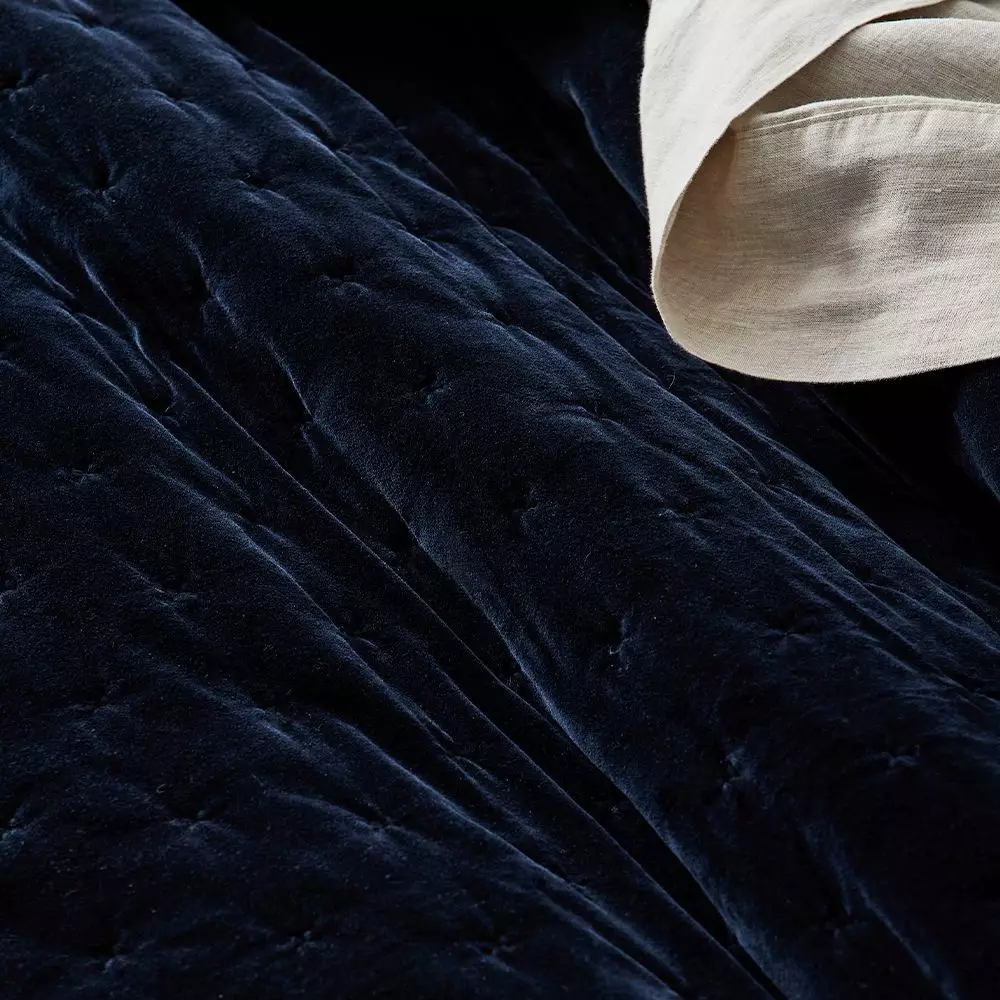 A luxurious velvet sham in a deep ink blue with a decorative edge and cross stitch tucking.